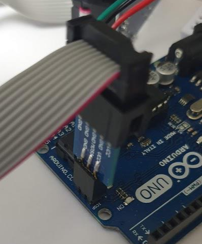 - USBasp 장치의 USB 플러그를 PC의 USB 포트에 연결하고 ISP 플러그를 아두이노 보드의 ICSP 단자에 연결한다.