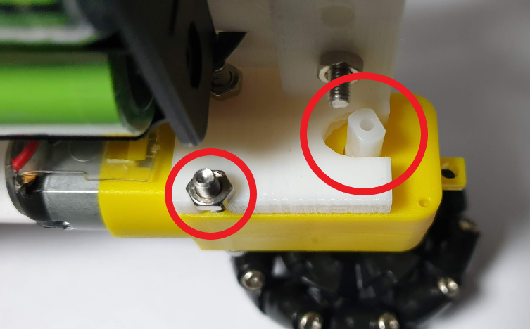 TT 모터 장착 시 출력물의 구멍에 맞지 않아 모터 축 부분과 아래쪽 나사 구멍을 넓히기 위해 일부분을 잘라내었다.