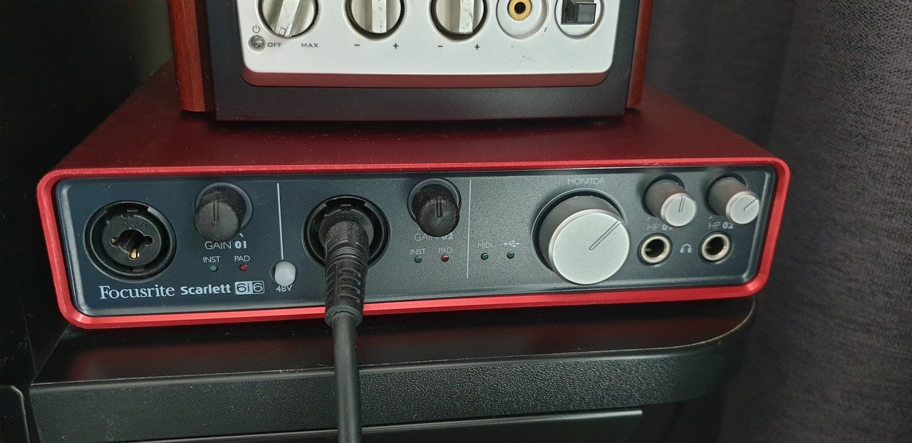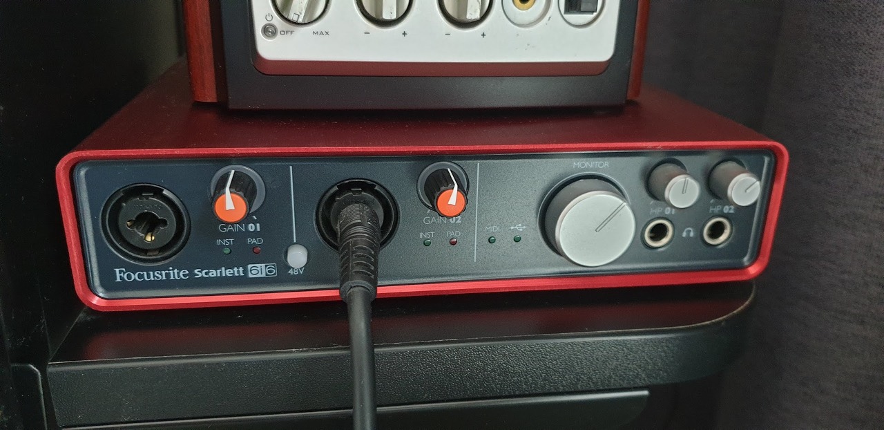 오디오 인터페이스에서 기존 노브를 제거하고 Flexi-Fit을 노브 몸체에 끼워 결합한 후 장착해보니 생각했던 것보다 훨씬 잘 어울린다.👍