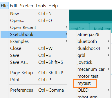 이렇게 하면 'mytest'가 Sketchbook의 이름이 되어 Sketchbook 리스트에 나타난다.