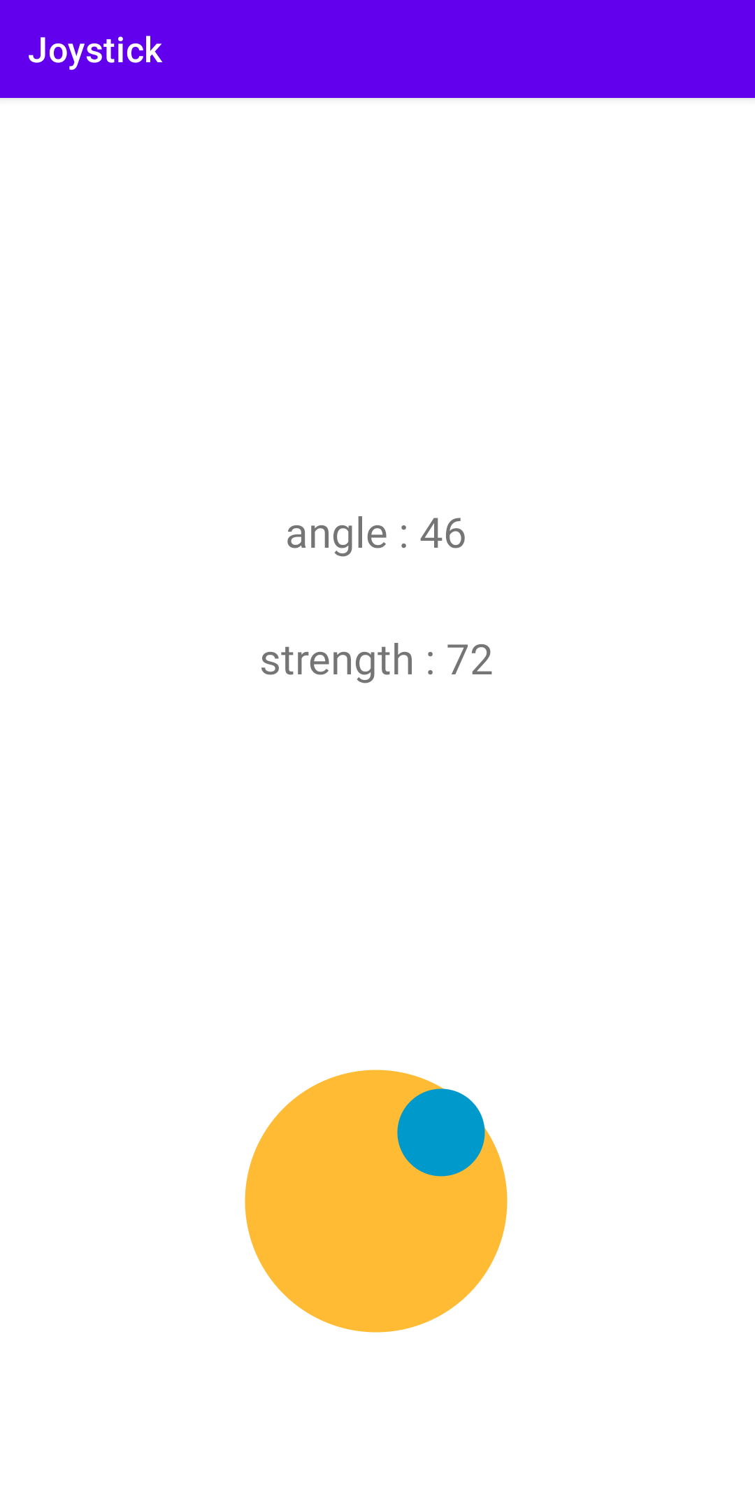 앱을 실행해서 스틱을 움직여보면 아래 그림과 같이 각도 값과 세기 값이 변하는 것을 확인할 수 있다.